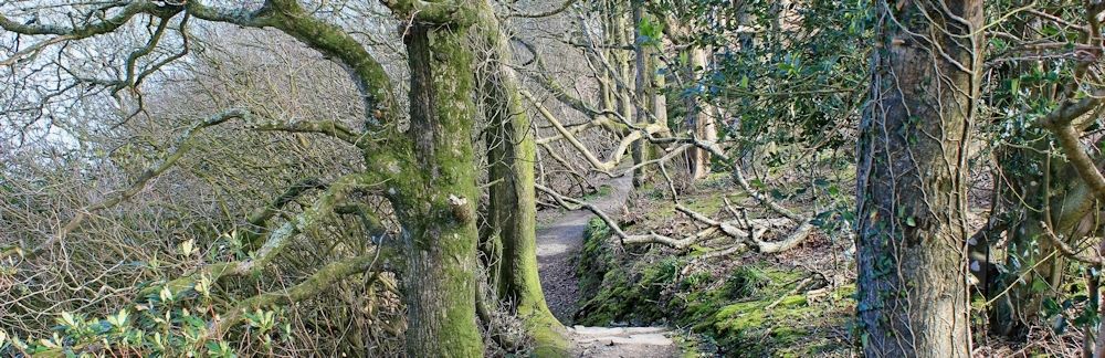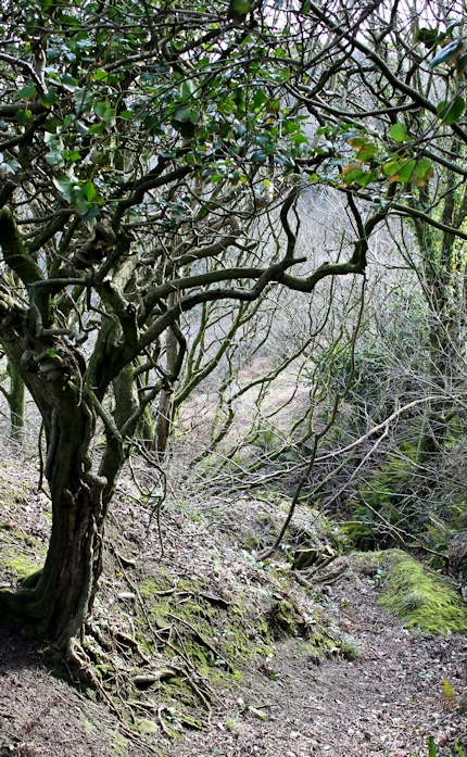 The path from here onwards becomes much more interesting and challenging. I walk down along the wooded slopes of a valley, thinking I am in Brownsham Wood.