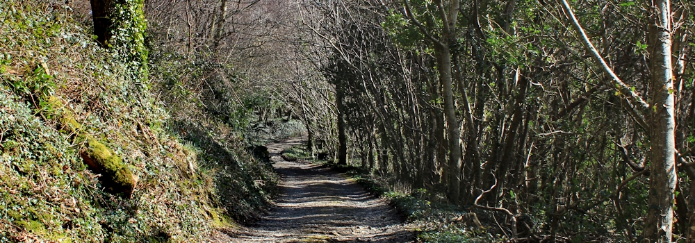 I follow the road along the top for a short distance, unsure of where I am or where Clovelly is. A path strikes off down the slope, through the trees, and I decide to follow it.