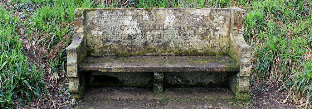 Further along and I come to a stone bench, marking where another 1/2 mile of carriageway was added to Hobby Drive in 1901.