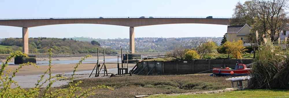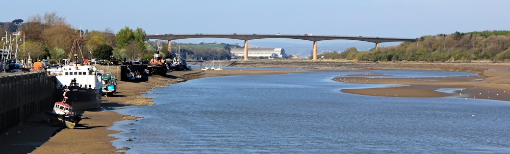 I stop on the bridge to take a photograph down the estuary. You can see the modern road bridge and the industrial wharf area of Appledore in the distance.