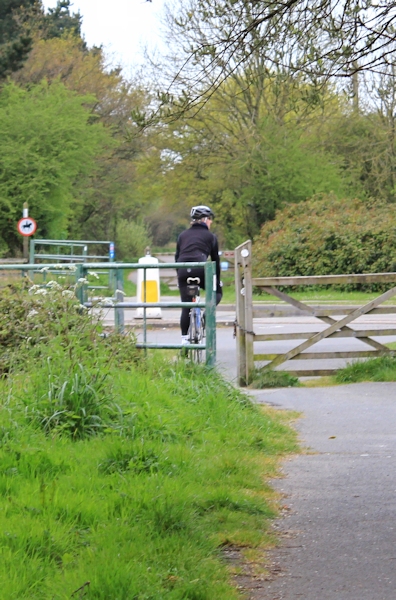 I cross over a small river – the River Yeo – via a modern swing bridge – and then walk along beside an industrial estate. This part of the cycle-way is busy with people cycling to and from the industrial estate. Workers, not tourists.