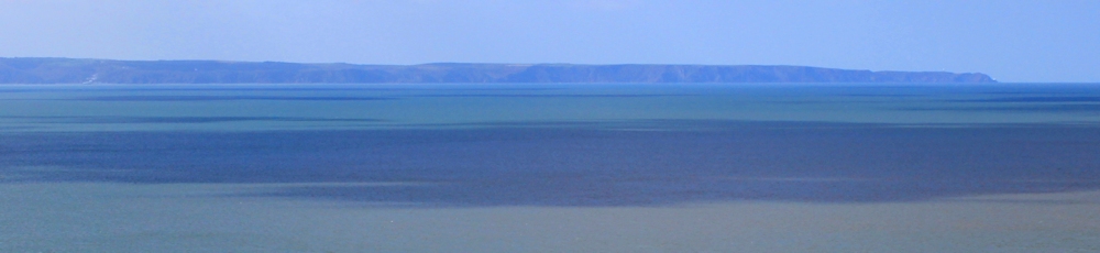 And in the distance is more land. I take a photograph with my camera on full zoom. The far headland must be Hartland Point. The group of white houses (on the far left of the photo below) is just recognisable as Clovelly.