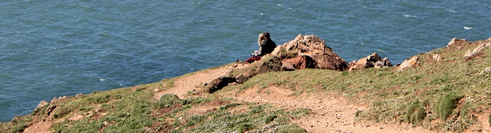 climbers, Ruth Livingstone, Baggy Point, Devon climbers, Long Rock, Ruth's coastal walk, North DevonAnd I feel even more insignificant when I see these tiny figures on the side of the cliff. A closer look. Two climbers. One in pink and one in blue. Girlfriend and boyfriend?