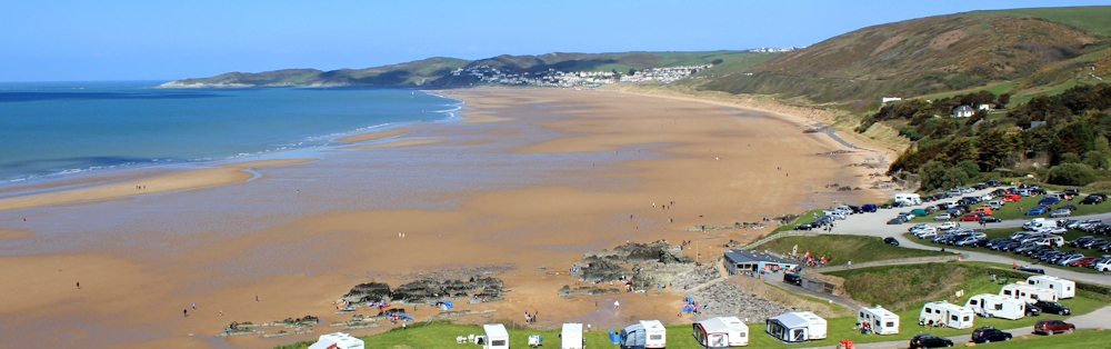 I walk down the slope. This end of the beach is called Putsborough Sand, with lots of touring caravans and old VW style vans with surfing equipment stacked on top.