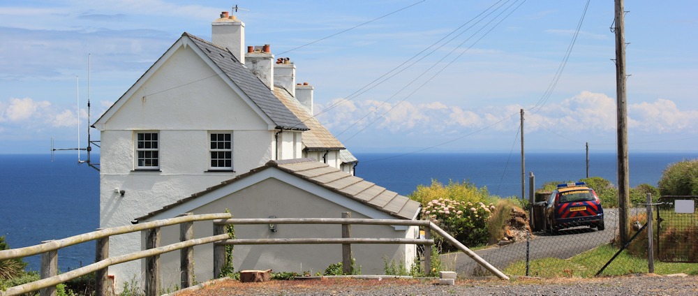 At the other end of the tangle of knotweed, I reach the highest point on this section of the A399. And here is a lovely white house overlooking the sea. A coastguard’s car sits in the drive. Does the coastguard and his/her family live here? What a wonderful position.