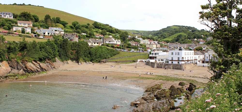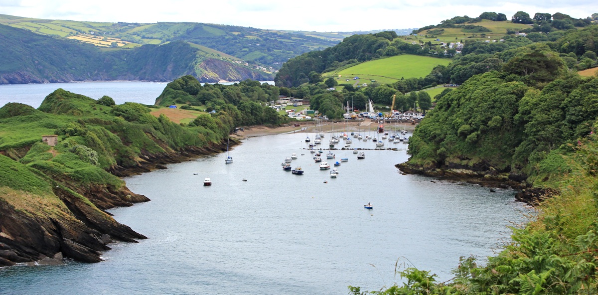 The harbour is full of boats of various sizes and, since the tide is going out, contains a lot of mud. A public footpath leads along the spit of land to the right of the photo below (Sexton’s Burrow), but I am behind schedule and so I stick to the official SW Coast path, and head eastwards.