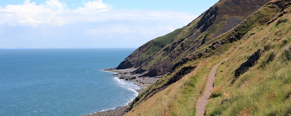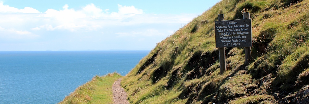 The path is narrow – a ledge really – above a steep drop to the sea. There is a warning sign – Walkers are Advised to Take Precautions when Using Path in Adverse Weather Conditions. What type of precautions? What does that mean, exactly? Luckily the weather this afternoon is fine.
