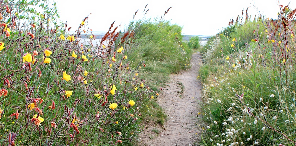 I stop at the car park, hoping to find a café or ice-cream kiosk. But there is nothing here. So I sit on a bench and eat a snack. A lady with a little girl in tow comes up to me. Have I seen a group of small children anywhere? She’s received an urgent mobile phone message – her granddaughter is cold in the wind and she’s brought her a warm jacket.