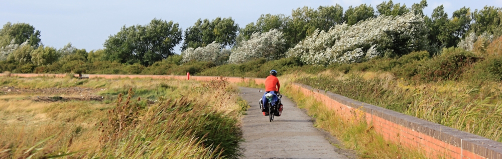 The bank curves around. Here is another estuary, where the River Brue meets the sea. I stop for a snack, hunkering down to try to escape the wind. Burnham-on-Sea looks very near, but I have to detour up the river to find the nearest bridge.