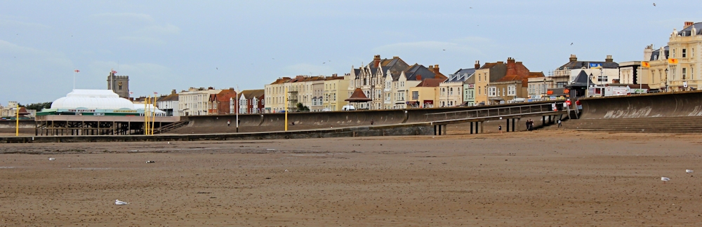From the sluice I walk along a low path, close to the shore. Is this estuary or sea now? Hard to tell. I wonder if the path is flooded at high tide. Ahead I can see Burnham-on-Sea.