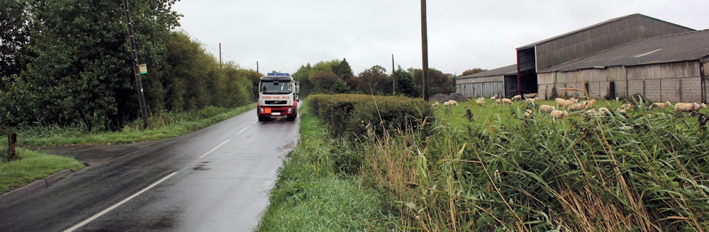 As I stop to take the photograph above, I am startled by a roaring noise coming up behind me. Thinking it is a huge juggernaut, about to run me down, I squash myself into the bushes. But it is not a lorry. It’s a train. The railway line runs just to the right of the road.