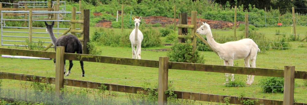 I emerge on the edge of a smallholding. There are horses. And llamas.