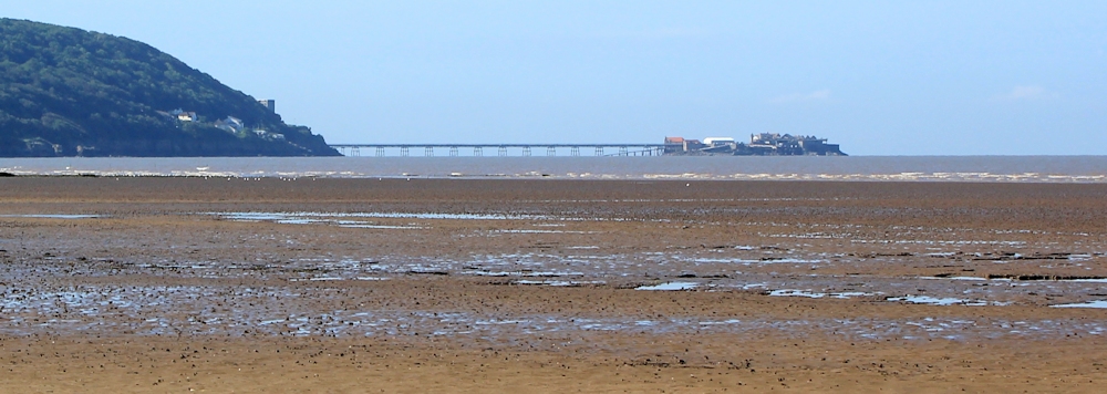 Wales across the mud, from Kewstoke beach, Somerset I walk along firm sand, close to the border where it turns to mud. There are plenty of lug worm casts and sea birds to keep me company.