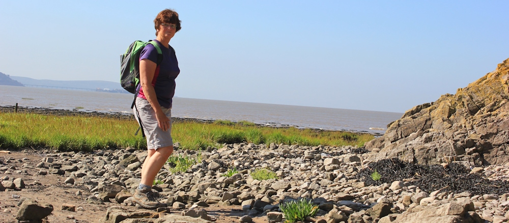 Sand Point, Ruth walking in Kewstoke, North Somerset coast