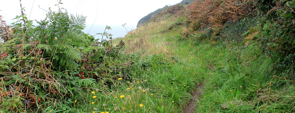 I come across footpath signs! The first I’ve seen all day. I’m grateful I can leave the road and follow a proper path around the coast.