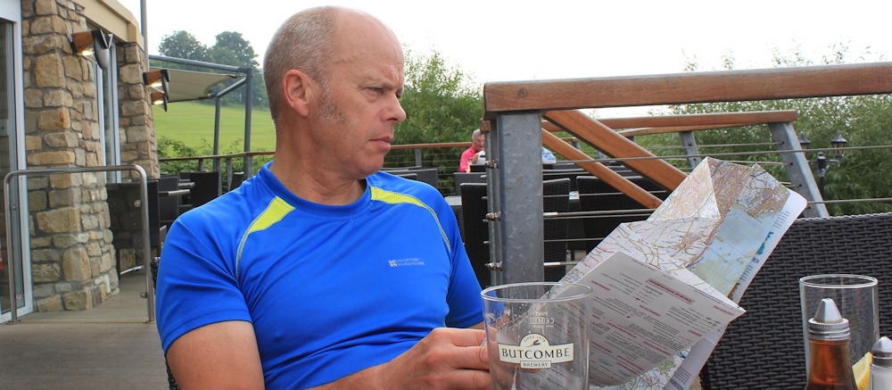 I make my way up the slope to the pub, forcing my way through a private gate at the bottom of the pub garden, to avoid the tiring climb to the top.