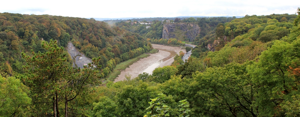 Luckily the rain stops, just as I reach the viewing area above the bridge, allowing me to pull my camera out. The tide is low and the River Avon looks a mere dribble, running between muddy banks. Mist curls among the trees.