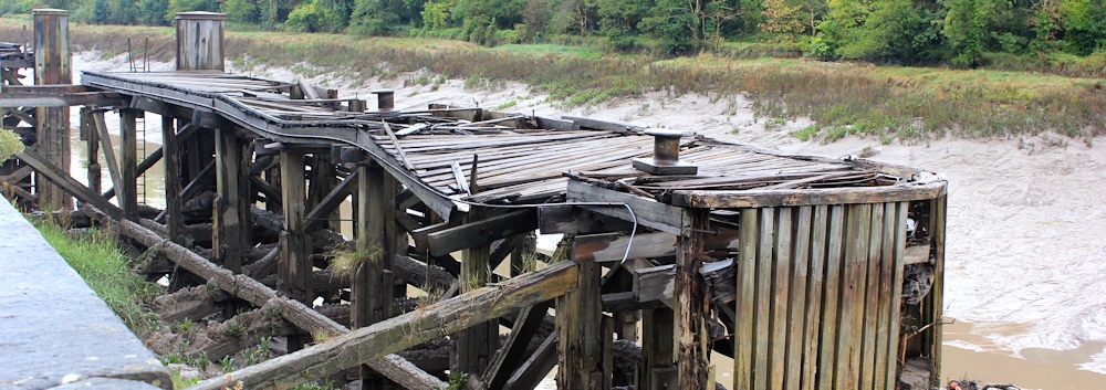 tumble down jetty, Ruth on The Severn Way, Bristol