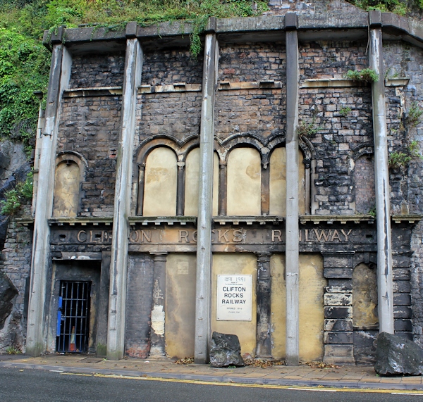 Clifton Rocks Railway, Ruth on the Severn WayThis is the old Clifton Rocks Railway Station. Later I discover it housed a funicular railway that ran in a tunnel up and down the cliff. The funicular was discontinued just before World War II, but had an interesting history during the conflict.
