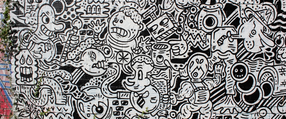 Here I find some wonderful graffiti. I particularly liked this intricate black and white design. Looks a little like a Popeye cartoon strip, but maybe after the artist has taken one too many pills of some sort.
