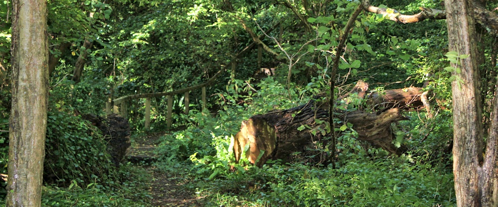 On the other side of the bridge the path leads through woodland. It weaves up and down and is very enjoyable.