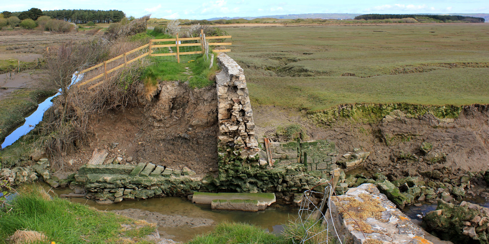 But this time, the signs are correct. Halfway across and I find the causeway has a great gap ripped through its central section. Impossible to go any further, unless I was wearing Wellingtons, and even then I might get stuck in the mud.