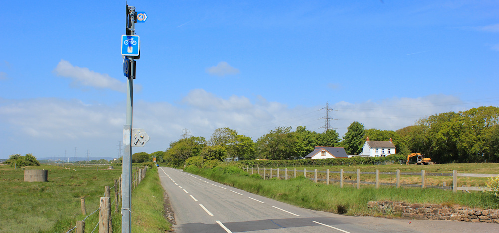 Over the bridge and the Wales Coast Path veers inland once more. (I’m beginning to realise the ‘Coast’ part of the name is a flexible concept!) But my quiet road, with its cycle lanes, continues straight ahead and so I decide to stick to the road.