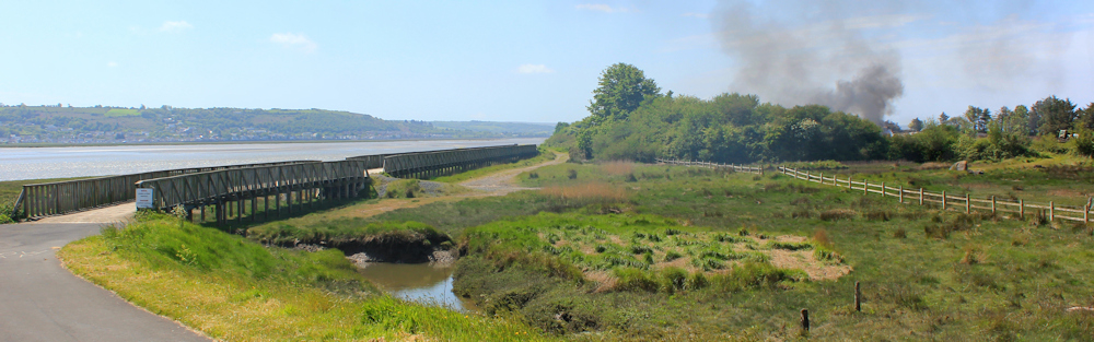 … and down towards the bank of the estuary. This part of the walk is only marred by a cloud of thick black smoke. Someone is burning something toxic. Tyres maybe? The smoke smells foul.