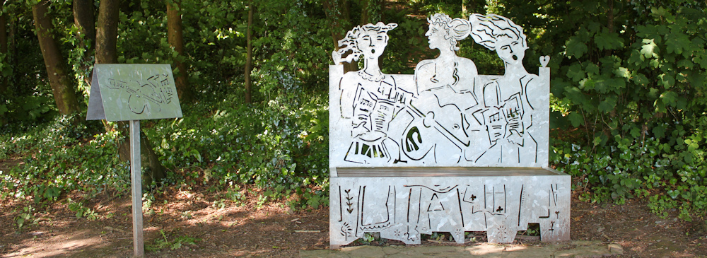 Llansteffan has a unique historical ritual during which the villagers elect a totally unofficial ‘Mayor of the Woods’. This spot in The Sticks is where the ceremony used to take place, and here a piece of modern sculpture by Judith Griffiths-Jones has been erected: a steel bench with a musical theme. It looks rather wonderful.
