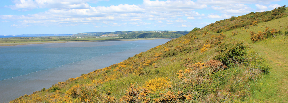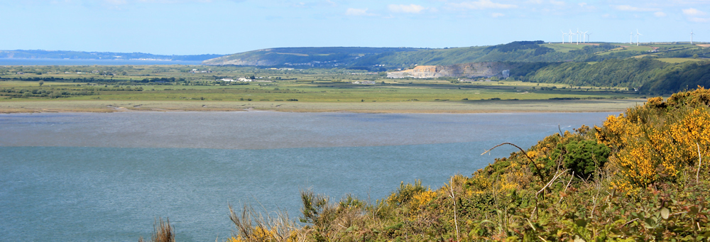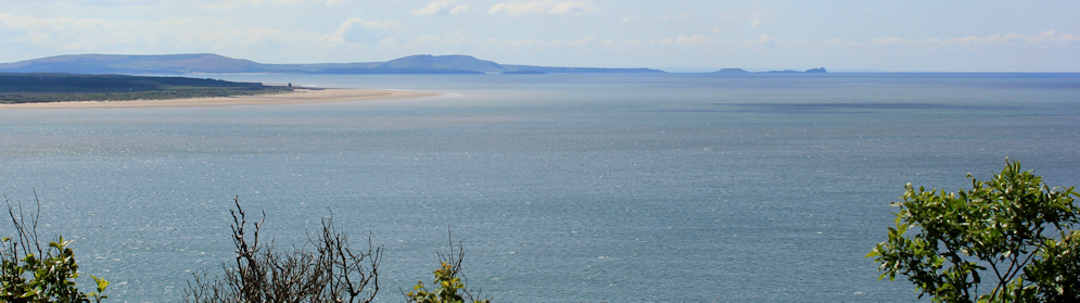 From the top, I can look clear across the mouth of the estuary, to Pembrey Forest and its golden collar of Cefn Sidan Sands, where I can even make out the stubby post of the military control tower. Beyond this the details of the landscape are obscured by blue haze, but I can see the ridge of Whiteford Burrows and the humps of Llanmadoc Hill and Rhossili Down on The Gower peninsula. The knobbly finger pointing into the sea is instantly recognisable: Worm’s Head.