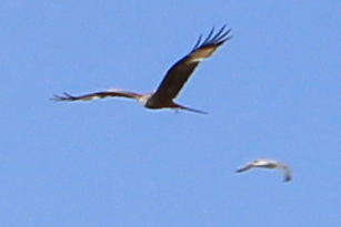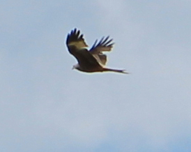 In a field nearby a farmer on a tractor has been making hay. A large bird wheels above him. I don’t have my telephoto lens with me and only manage a few blurred photographs. I’m hopeless at identifying birds. Is it a red kite?