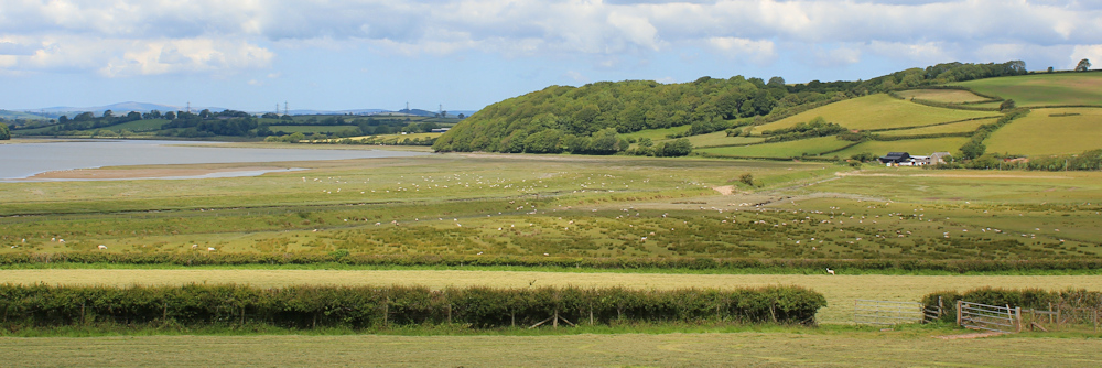 I follow the Wales Coast Path as it climbs into woodland (called The Sticks) and circles around Castle Hill. Through gaps in the trees, I get a great view looking up the estuary. The sun is breaking up the clouds. and it promises to be a fine day.