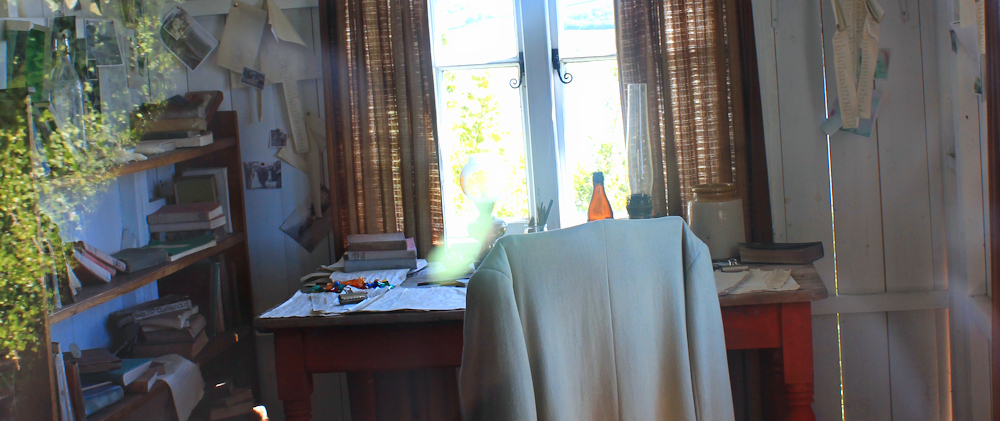 On the lane above the Boat House is a shed. This was once a small garage, but Dylan Thomas converted it into a writing room. It’s almost directly above the Boat House and enjoys the same view. What an inspiring place for a poet! Through a glass door, you can see his table, littered underneath with discarded pages of writing, his coat draped casually over the chair. I’m not sure how much of the furnishings are original, but it has a nice authentic feel to it.