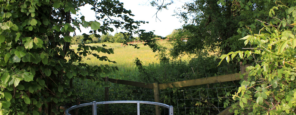 I cross a bridge and leave the town behind. Traffic is light, but I’m relieved when the path diverts off the road. The sunlit field behind the kissing gate seems very enticing, even if I end up walking on the right hand side of the road and, therefore, the wrong side for the river.