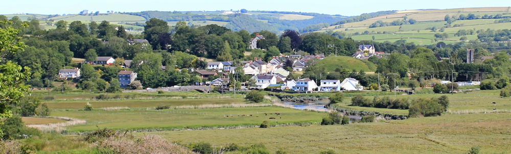 The Wales Coast Path is doing it’s best to keep me off the road. It dives off to the left and takes me across fields and down a hill. From the slope I get a good view back up the river valley towards St Clears. The river that winds around the edge of the town is not the River Taf, as I first thought, but another tributary – the Afon Cynin.