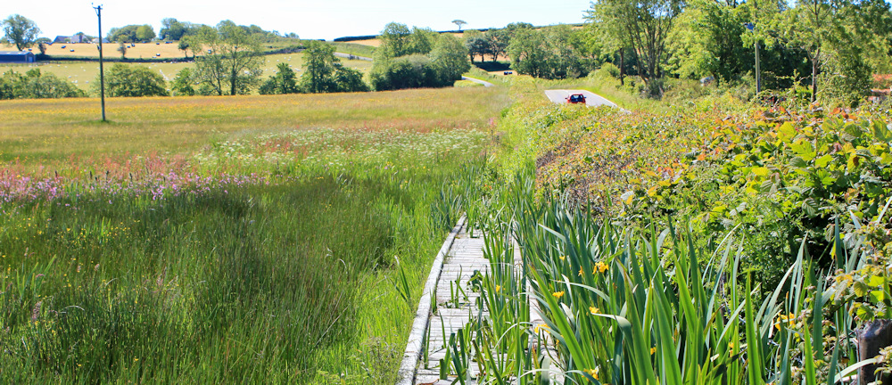 The authorities who oversee the Wales Coast Path have really done their best to make this hike a pleasant experience. A raised wooden walkway lifts me above any mud, punctuated by the insistent yellow flag irises that have forced their way through gaps in the planks.