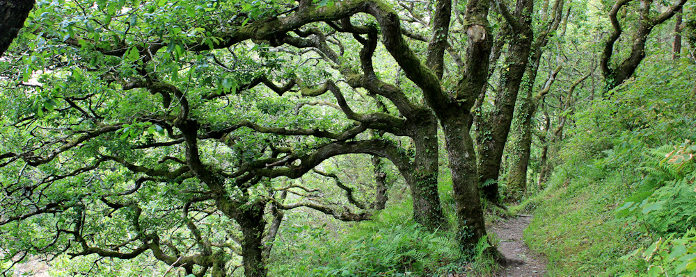 It makes me feel better to meet other walkers looking more exhausted than I do. Their discomfort perks me up, and I really enjoy this section of the walk through mixed woodland, where the tree branches twist and turn in corkscrew shapes around me.