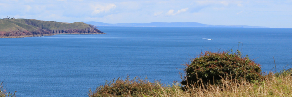 From Freshwater East, I climb up to Trewent Point. Here, thanks to the clear air, there is a fantastic view across the sea. I pull out my map to work out what I’m looking at.