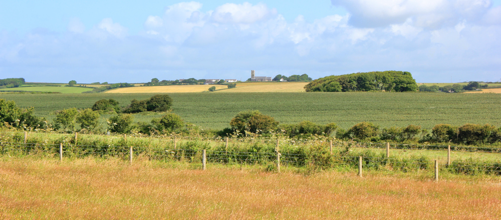 My bus driver was wrong about the road walking. A footpath sign directs me off the track and I follow the Castlemartin Range Trail, which turns out to be a pleasant grassy ramble through fields around the periphery of the range.