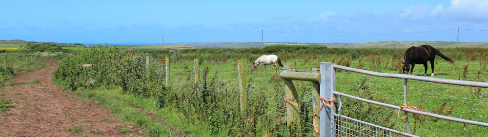 But the mud doesn’t turn out to be as bad as I feared. Only a surface layer. And no cows on the path, only horses in an adjacent field.