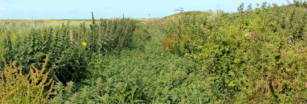 Sadly some of this section of path is badly overgrown. I get stung by nettles and scratched by thistles. And I risk a twisted ankle, as I am unable to see the ground, which feels very uneven beneath my boots.