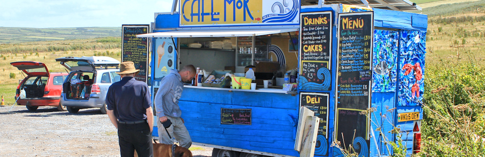 In the car park I find a mobile food trailer. This menu looks great, and I’m tempted to try a laverbread sandwich but I’ve brought a packed lunch with me. Instead of sandwiches, I buy a piece of ginger cake and a cold can of coke.