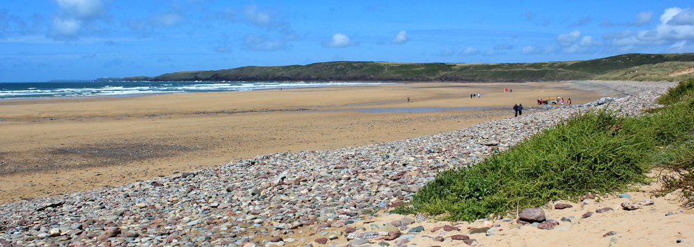The views back across Freshwater West are stunning. White waves, bright sands, red rocks.
