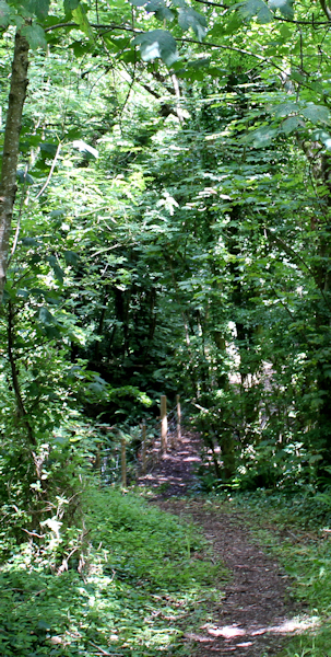 After the rest, I feel better. In fact, I make rapid progress. The track swings to the left, but my path goes off to the right, dipping down to a little bridge, and taking me through wooded glades…