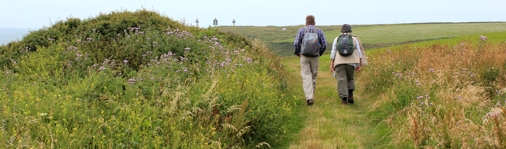 05 hikers walking towards St Ann's Head, Ruth in Pembrokeshire