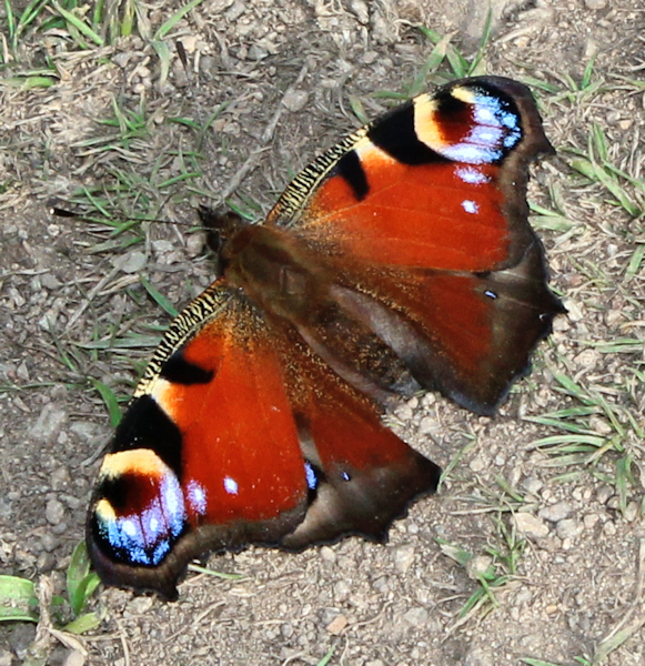 Peacock, Ruth LivingstoneSome of my walking friends have noticed a lack of butterflies this year, but as I slither down into the valley I find plenty of them sunning themselves on the path. They are frustrating to photograph, as every time I get close enough, they flutter away.