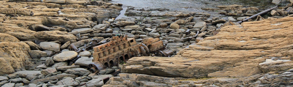 This section of coast is beautiful and dramatic. Below me, on jagged rocks, I see the metal remains of a wreck.