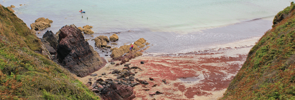 A local guide-book told me to watch out for seals in the rocky coves. But there are no seals today. Instead, every cove seems to be taken over by kayakers, or by coasteerers, or by rock climbers. I’m not used to sharing my coast with so many people!