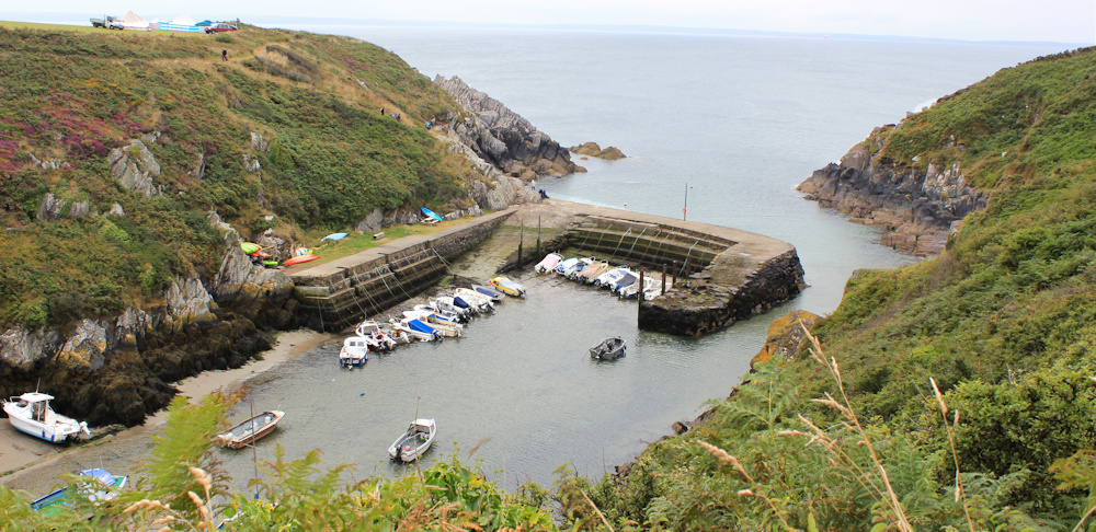 The first little cove beyond Caerfai Bay is called St Non’s Bay (after the mother of St David). After that, the comforting names that characterise the rest of St Bride’s Bay disappear. Gone are the English sounding bays and havens. Instead the map is punctuated by Welsh names and, here is another similarity with Cornwall, every little cove is a porth.