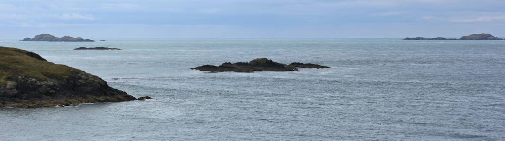 After lunch, I walk along an increasingly crowded path and climb up onto Pen Pedol, a rocky outcrop with panoramic views over Ramsey Sound. I am about to leave St Brides Bay behind. Ahead is the most westerly point on mainland Wales. And over the water is Ramsey Island.